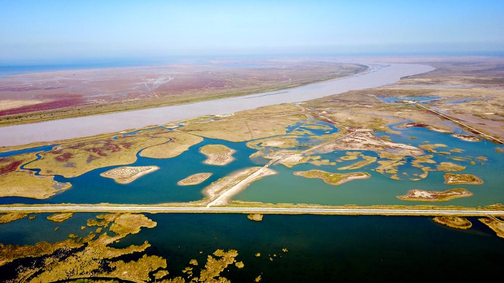 近年來,黃河三角洲國家級自然保護(hù)區(qū)建成“引、輸、蓄、排”科學(xué)生態(tài)補水體系,同時著力構(gòu)建“河—陸—灘—海”連通體系,連通水系115公里,疏通潮溝76公里,恢復(fù)黃河與海洋的水文連通。原先的光板地、鹽堿灘,變成了水草豐茂、生物多樣性富集的大濕地。