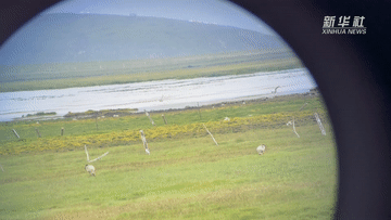 甘肅尕海則岔國家級自然保護(hù)區(qū)管護(hù)中心尕海保護(hù)站站長香毛吉(左一)和同事在保護(hù)區(qū)內(nèi)用望遠(yuǎn)鏡觀測野生動(dòng)物。 新華社記者 陳斌 攝