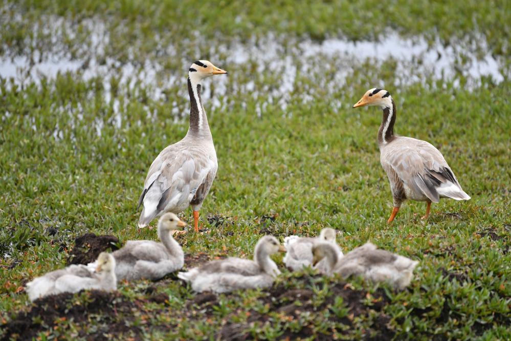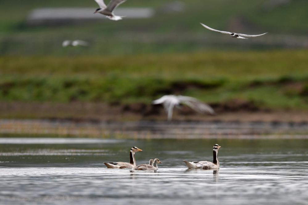這是在甘肅尕海則岔國家級自然保護(hù)區(qū)的尕海濕地上拍攝的斑頭雁。 新華社記者 陳斌 攝