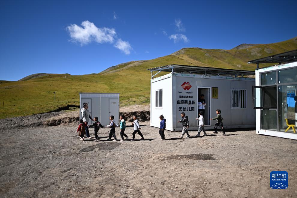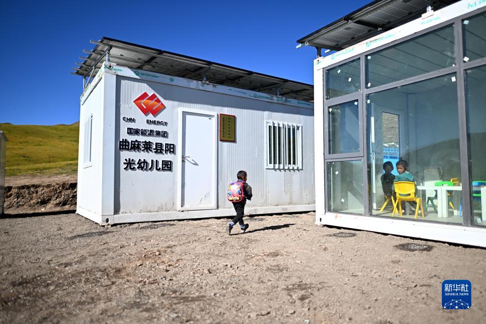 作為曲麻萊縣定點幫扶單位,國家能源集團(tuán)自2022年起累計投入1350萬元,在曲麻萊縣建設(shè)15所陽光幼兒園。陽光幼兒園為集裝箱式房屋,配備屋頂離網(wǎng)儲能光伏系統(tǒng),可以滿足供暖、照明等需求。幼兒園招收居住在周邊牧場的兒童,讓孩子們在離家不遠(yuǎn)處就能接受學(xué)前教育。