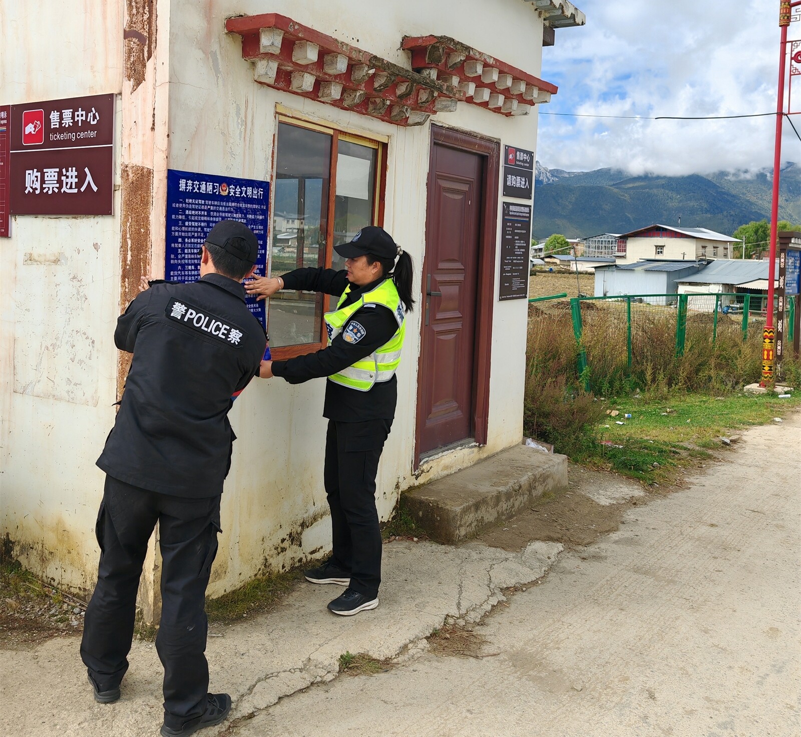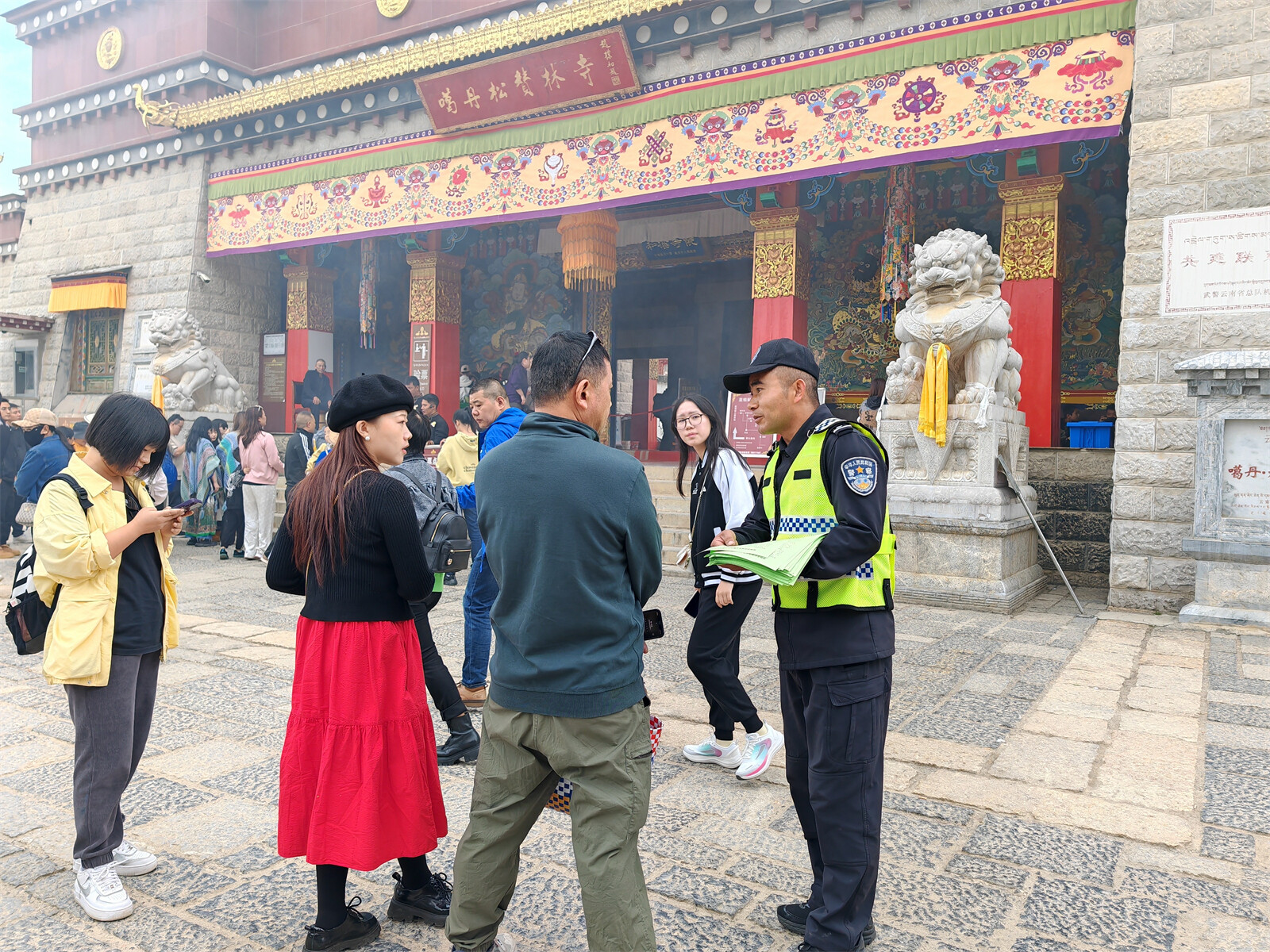 10月1日起,香格里拉市公安局直屬城市交警大隊組織民輔警走進松贊林寺景區(qū)、納帕海景區(qū)開展交通安全宣傳活動,加強景點路面管控,確保國慶期間景區(qū)道路安全、有序、暢通。