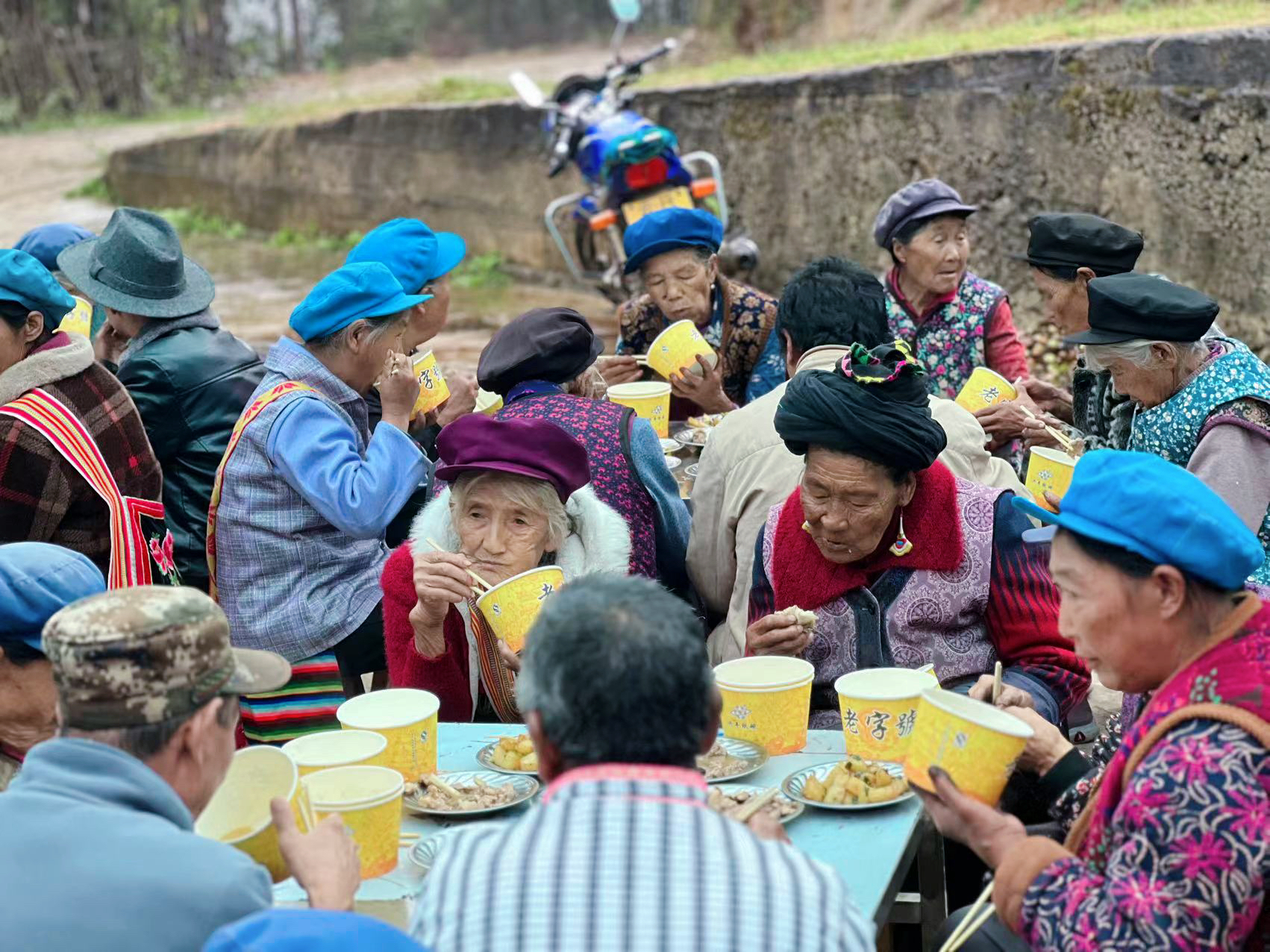 活動當天,村里的瓦器器舞蹈表演隊為老人們表演了精彩的節(jié)目。老人們圍桌而坐,不時地舉杯慶賀屬于他們的節(jié)日,享用著精心烹制的美味佳肴,幸福的笑容始終洋溢在老人們的臉上。活動現場一片歡聲笑語,氣氛溫馨和諧。