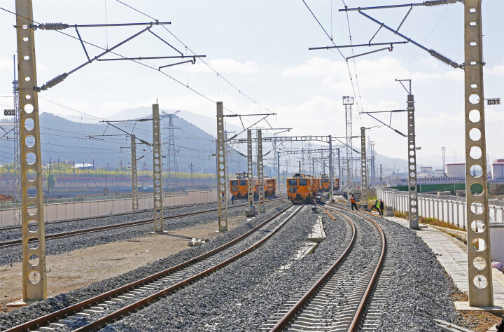 近日,記者在滇藏鐵路麗香段香格里拉站看到,現(xiàn)場(chǎng)正在進(jìn)行大機(jī)搗固作業(yè),工人們正緊抓施工進(jìn)度,高效組織施工作業(yè),全力以赴保障全線順利開通運(yùn)營(yíng)。