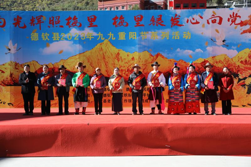 活動中,德欽縣縣委、政府負責(zé)人分別為2023年德欽縣“黨的光輝照梅里 梅里銀發(fā)心向黨”重陽節(jié)系列慶?;顒又罗o,并通報了德欽縣2023年經(jīng)濟社會發(fā)展情況。