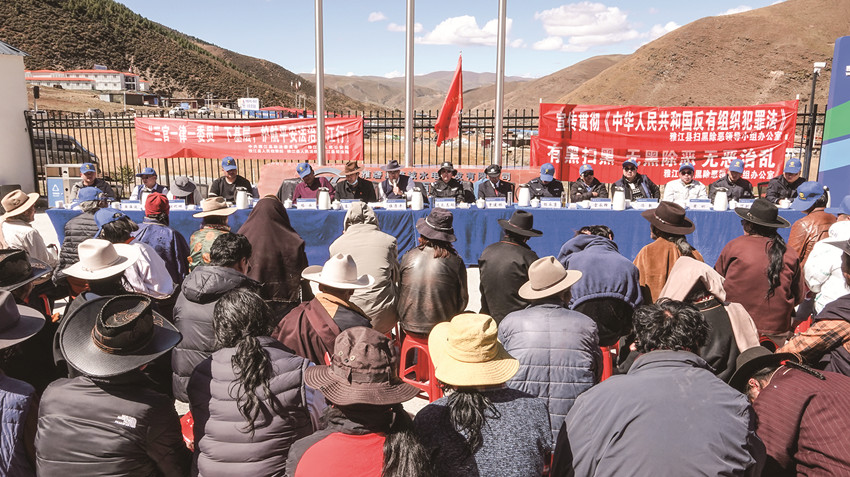 活動現(xiàn)場,宣講團全體成員針對偷盜、無證駕駛、非法攜帶管制刀具等違法犯罪問題,通過現(xiàn)場講法、現(xiàn)場說法、以案釋法等方式,采取藏漢雙語、“地腳話”等群眾樂于接受、通俗易懂的方式,大力宣傳《刑法》《治安管理處罰法》《反有組織犯罪法》《信訪工作條例》《保障農民工工資支付條例》等群眾關心的法律法規(guī)和相關政策,并就群眾經(jīng)常遇到的問題進行答疑解惑。宣講內容詳實具體,具有很強的針對性、指導性和可操作性。