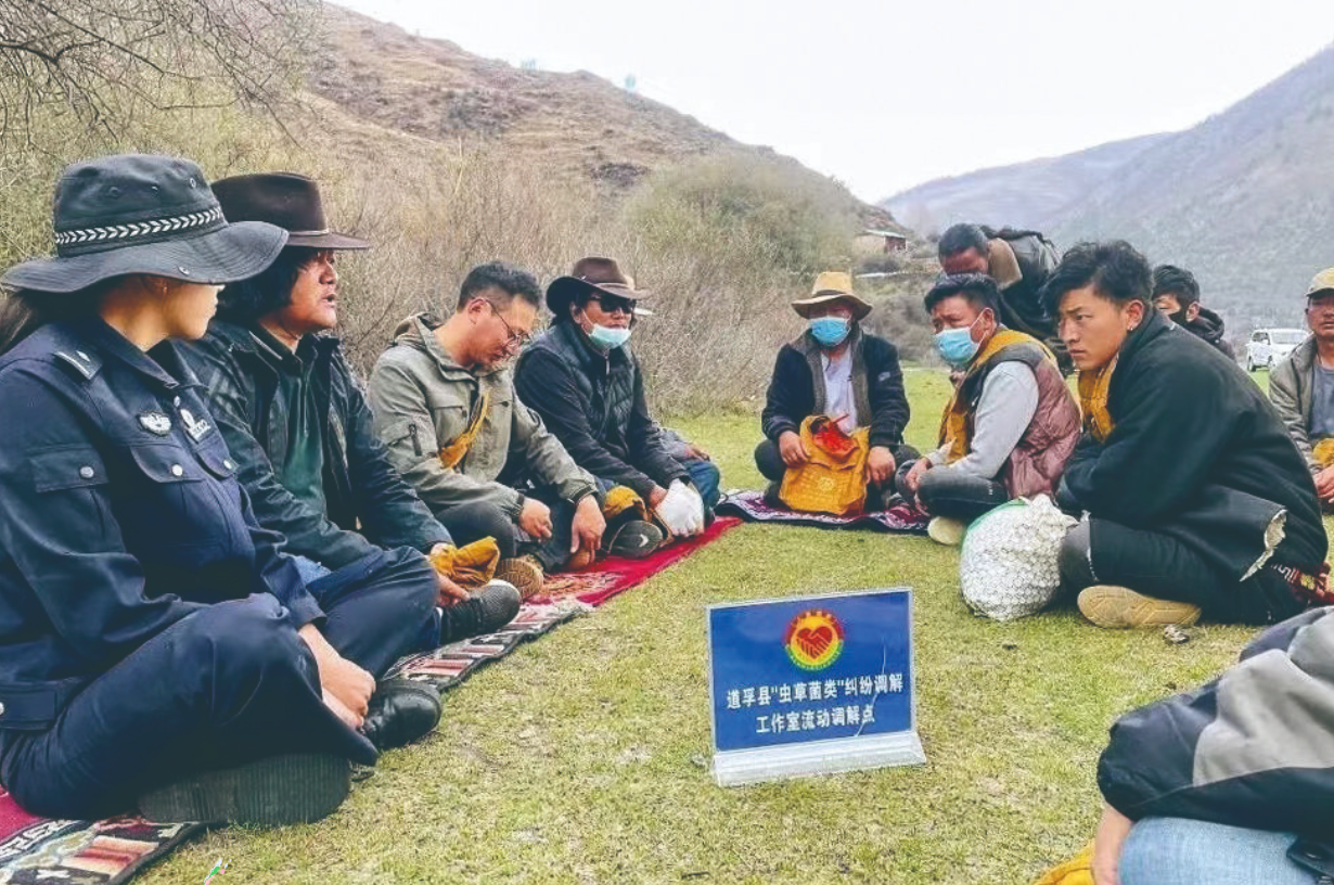 “蟲草菌類”糾紛調(diào)解工作室流動調(diào)解點現(xiàn)場調(diào)解矛盾糾紛。
