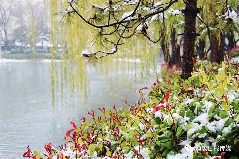 白雪與黃葉相映成趣,是這個初雪日別樣的風(fēng)景。