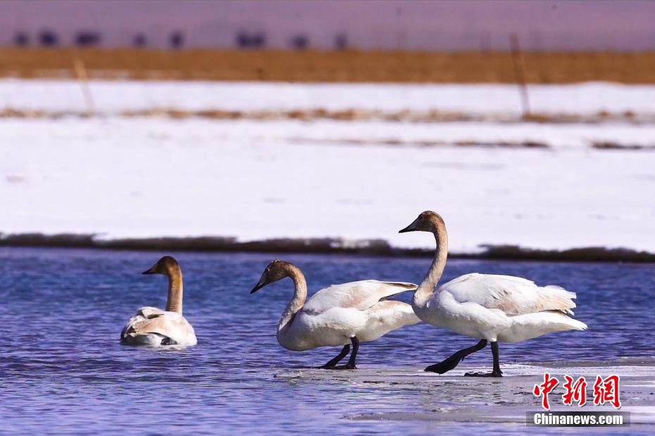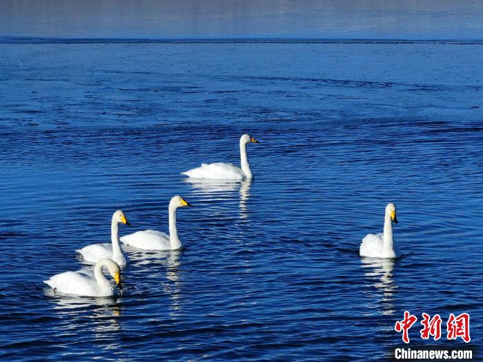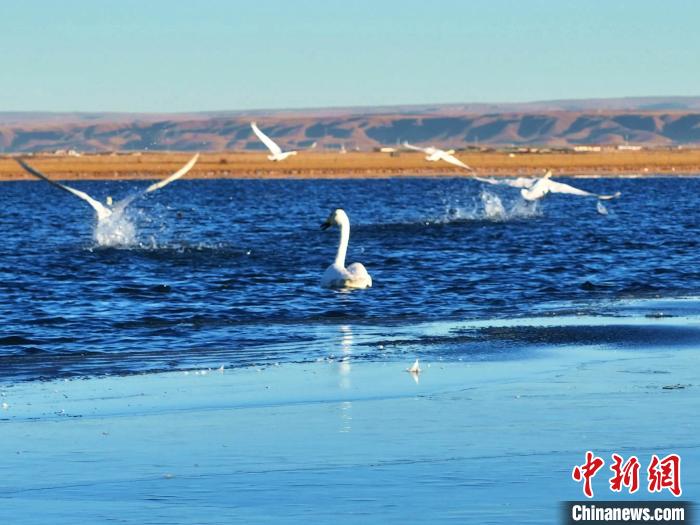 青海湖大天鵝遷徙而來(lái) 沐浴游弋宛若仙子