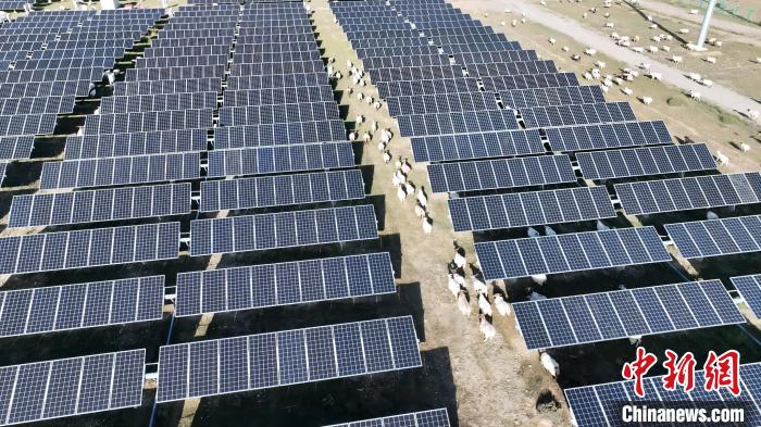 圖為“光伏羊”在塔拉灘光伏發(fā)電園區(qū)內(nèi)。陳宗淇 攝
