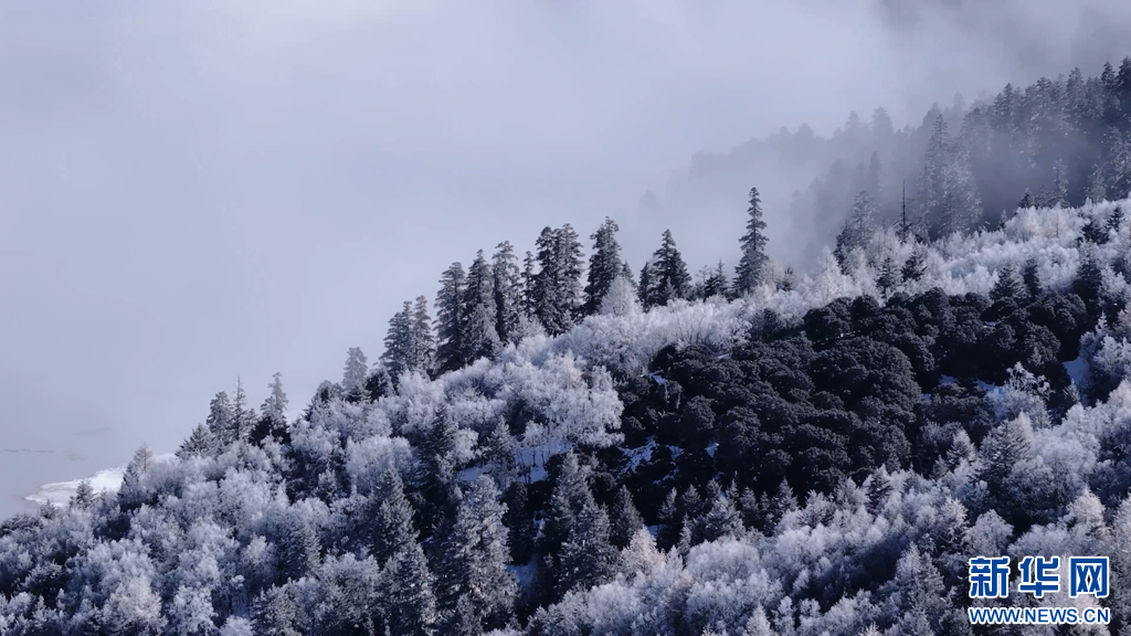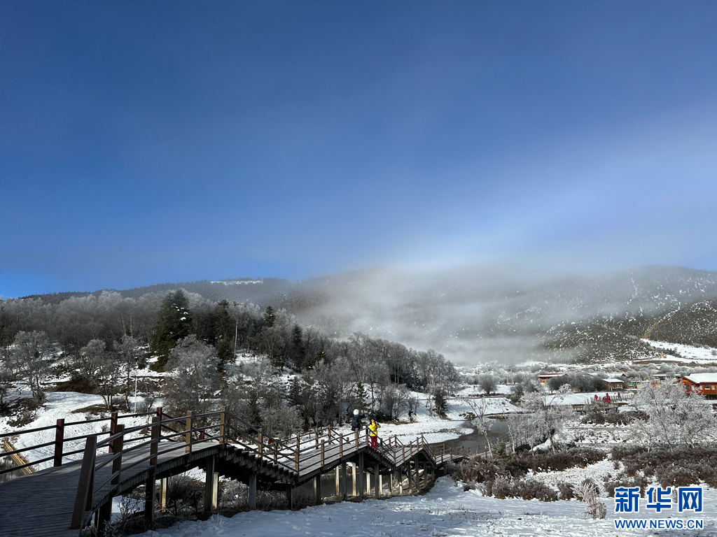 銀裝素裹的普達措景區(qū)(11月20日攝)。新華網(wǎng) 趙冬蓮 攝