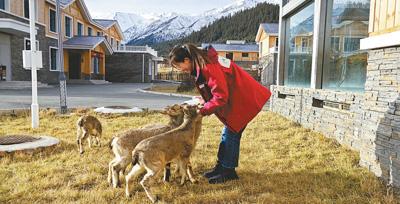 張玉珍喂養(yǎng)巖羊。受訪者供圖