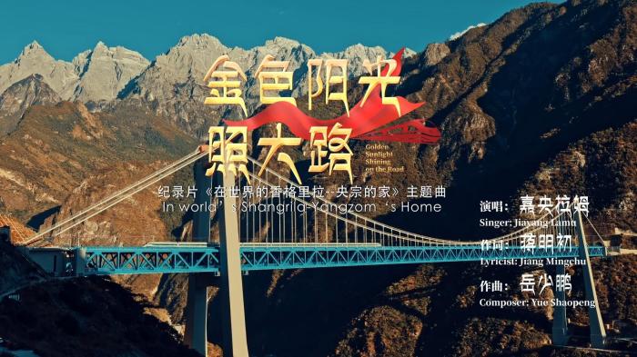 主題曲《金色陽光照大路》MV始于動(dòng)車飛馳通過金沙江特大橋的畫面,雪山腳下、虎跳峽之上,一條“金色大道”已徐徐鋪就。從央宗一家放牧轉(zhuǎn)場(chǎng)的羊腸小道,到今日開通運(yùn)營的麗香鐵路,該片將云南涉藏洲縣的發(fā)展進(jìn)步、社會(huì)和諧、民眾幸福的故事展現(xiàn)在全世界觀眾面前。