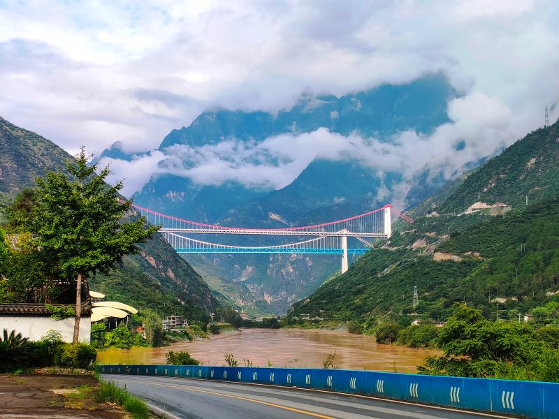 麗香鐵路、香麗高速、國道214虎跳峽段“三路“同框 (李競(jìng)?cè)?攝)