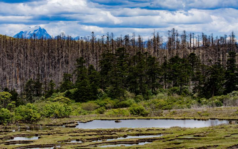 碧沽天池周?chē)?0多平方公里的地方被原始森林覆蓋,樹(shù)木高大挺拔,多為云杉和冷杉。還有綠茵茵的牧場(chǎng)、安靜的牛羊群,以及動(dòng)人心魄的杜鵑花。