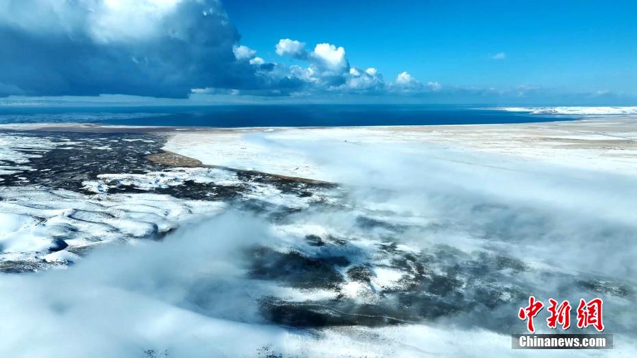 雪落青海湖金沙灣:明暗交錯(cuò)若大自然的“咖啡拉花”