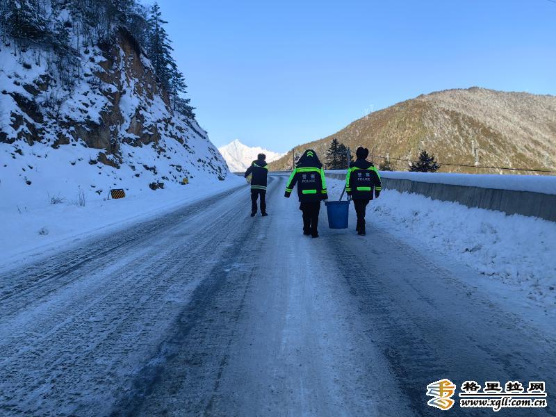 德欽縣公安局交警大隊(duì)迅速啟動(dòng)惡劣天氣應(yīng)急預(yù)案,組織民輔警全員上崗,以雪為令、全警上路頂風(fēng)雪、冒嚴(yán)寒、戰(zhàn)低溫奮戰(zhàn)在道路一線,成為一道道冰雪中靚麗的風(fēng)“警”線,確保轄區(qū)道路交通秩序的安全、有序、暢通。