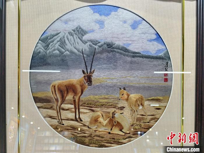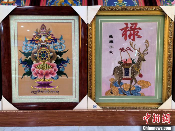 圖為藏繡研發(fā)中心展廳內(nèi)陳列的藏繡作品。祁增蓓 攝