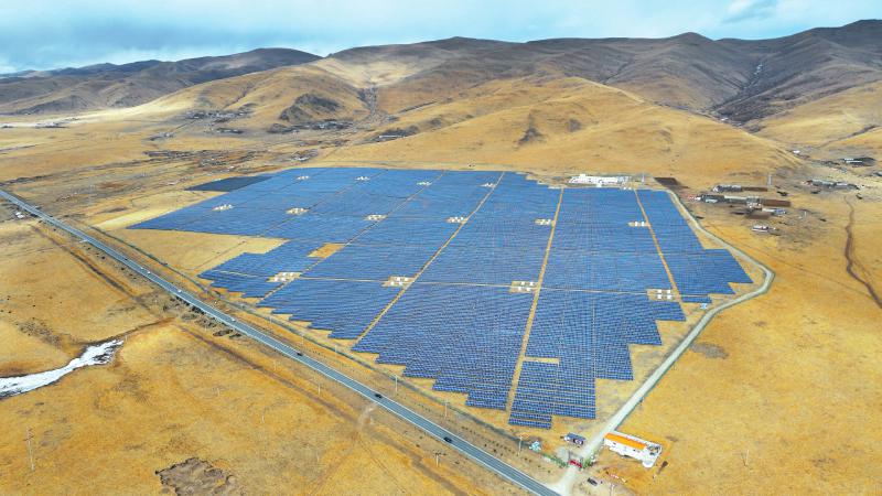 12月22日,四川省阿壩藏族羌族自治州阿壩縣蘭措瑪光伏電站,一片片光伏板在陽光照射下源源不斷地送出清潔電力。蘭措瑪光伏電站是阿壩縣首個(gè)大型光伏電站,除了發(fā)揮發(fā)電作用外,光伏板的下方還種植了牧草,實(shí)現(xiàn)經(jīng)濟(jì)效益、社會效益和生態(tài)效益的多重豐收。