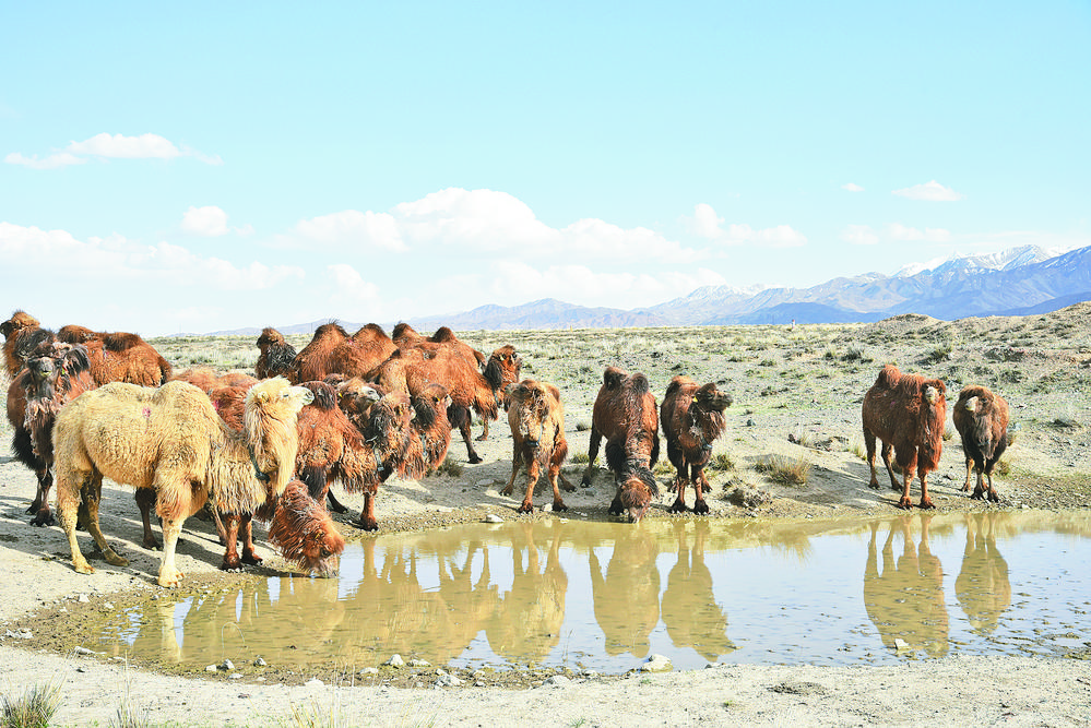 飲水的駱駝。蘇烽 攝