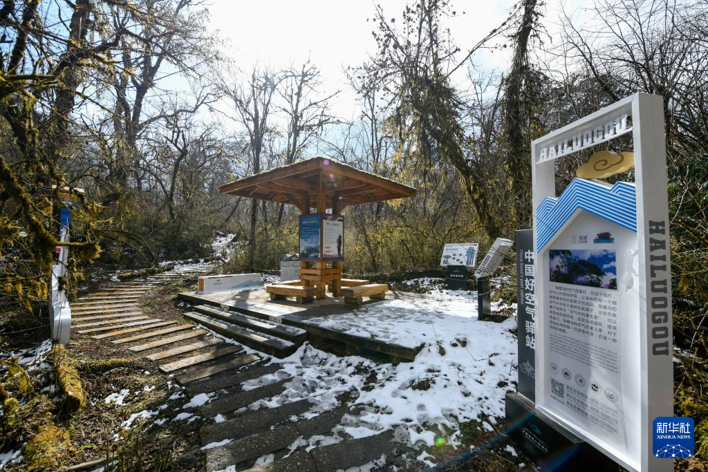 這是1月10日拍攝的海螺溝景區(qū)草海子步游道一角。景區(qū)重建時(shí)在步游道上新增了信息提示牌,供游客更好地認(rèn)識海螺溝。新華社記者 胥冰潔 攝