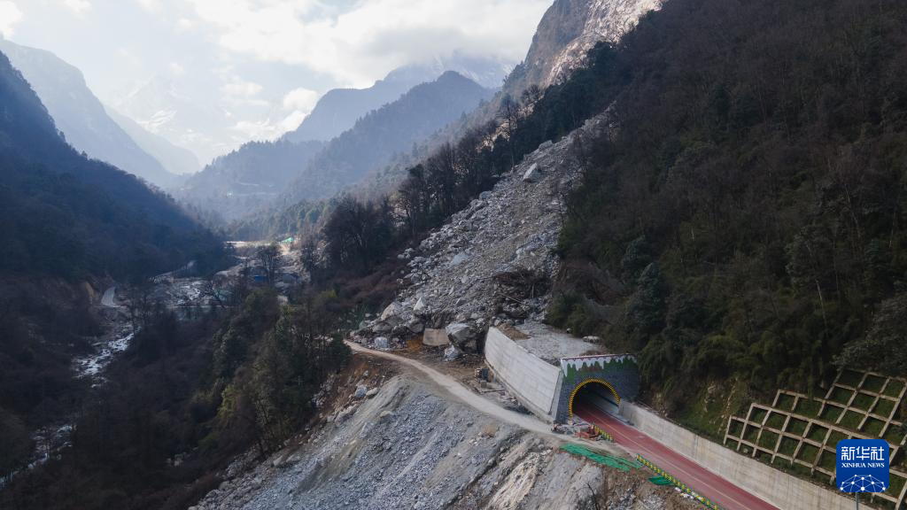 這是1月10日拍攝的海螺溝景區(qū)公路上一處新建的隧道(無人機(jī)照片)。景區(qū)重建時(shí),避開地質(zhì)災(zāi)害點(diǎn)新建了4個(gè)隧道,抗災(zāi)能力得到提升且縮短了通往景區(qū)的時(shí)間。新華社記者 胥冰潔 攝