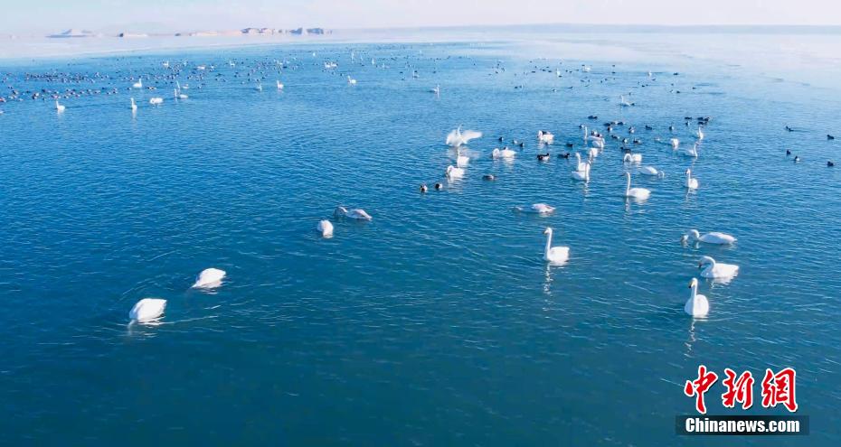 天鵝在湖冰上休憩。青??婶斂撕?托素湖省級自然保護區(qū) 供圖
