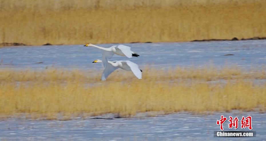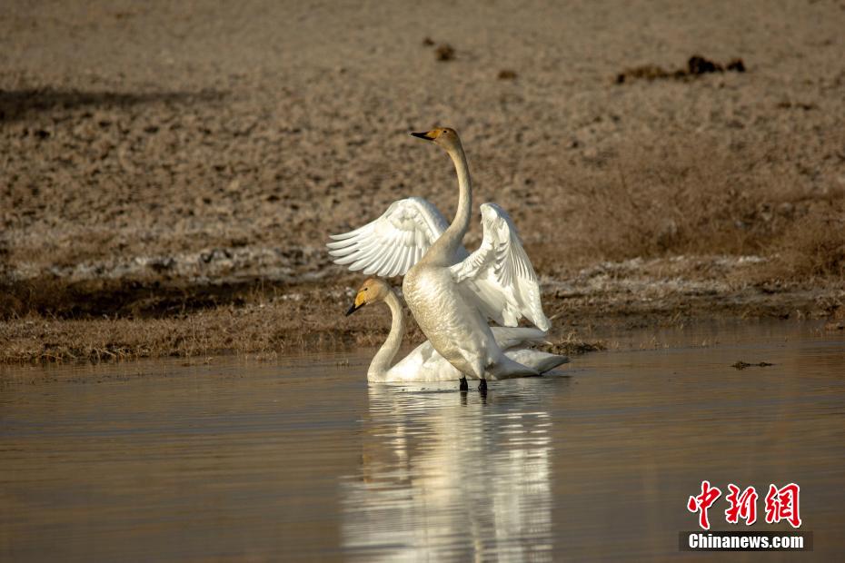 上百只天鵝飛抵柴達木盆地可魯克湖越冬