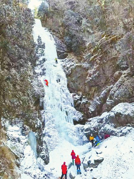 冰雪運動愛好者在四姑娘山攀冰。扎西 攝