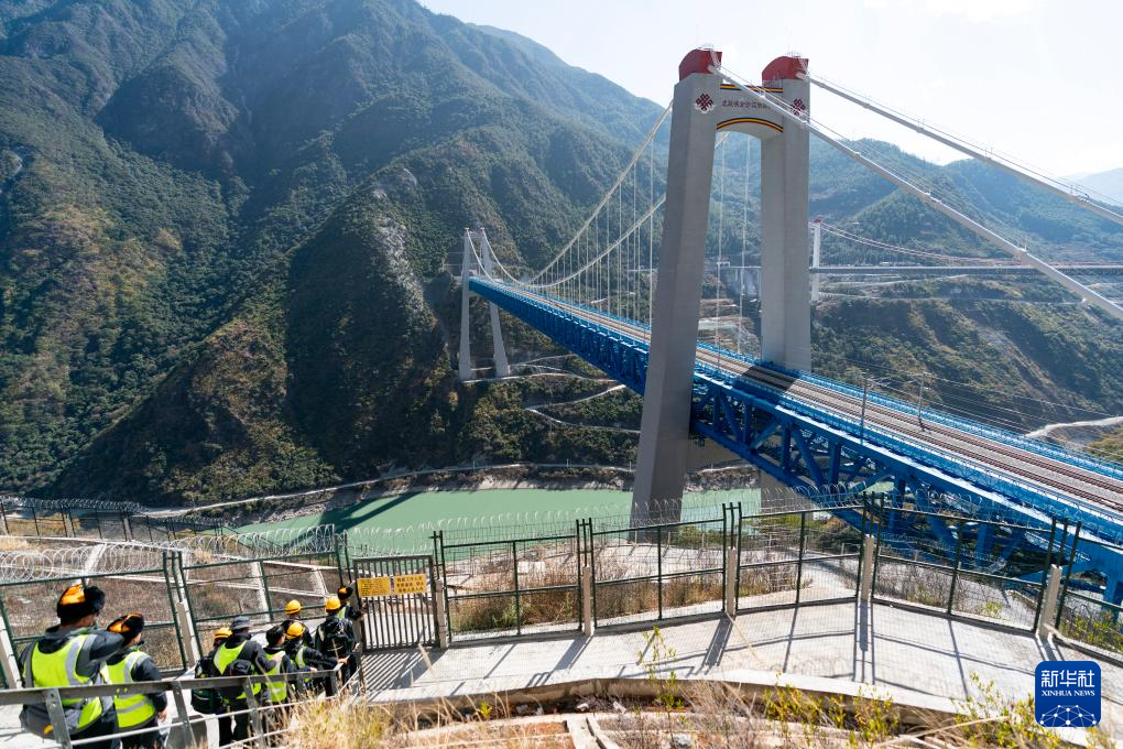 云南麗江至香格里拉鐵路(麗香鐵路)即將迎來開通后的首個春運,為確保旅客平安出行,國鐵昆明局廣通工電段新尚綜合維修工區(qū)班對虎跳峽金沙江鐵路大橋進行全面“體檢”。