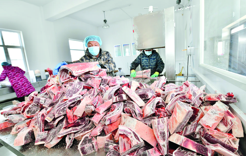 1月24日,記者走進(jìn)青海省海西蒙古族藏族自治州格爾木市唐古拉山鎮(zhèn)長江源村的唐古拉牦牛、藏羊精深加工基地,車間內(nèi)屠宰、冷凍、包裝等功能區(qū)劃分明確,一應(yīng)俱全。忙碌的生產(chǎn)線上,身穿食品加工工作服的工作人員正沿著流水線緊張有序地工作。剔骨、粗分完成后,工作人員再按不同部位精準(zhǔn)分割、整齊打包,等待銷售發(fā)貨,全力保障年貨產(chǎn)品的市場供應(yīng)。長江源村駐村第一書記梁亮告訴記者:“臨近春節(jié),牛羊肉禮盒備受青睞,浙江、江蘇、西藏等地的訂單也比平時增加了很多。牛羊肉產(chǎn)業(yè)鏈的延伸,成為了我們長江源村鄉(xiāng)村振興的又一把‘金鑰匙’?!?/p>