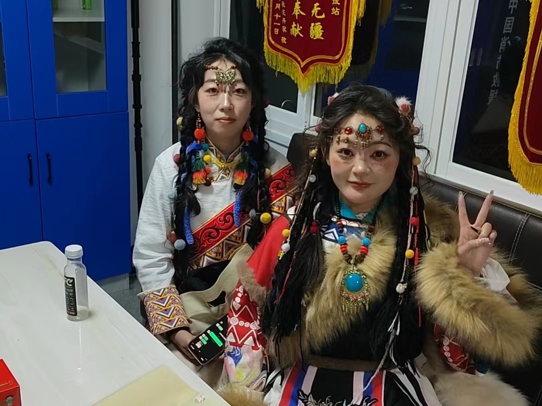 1月30日下午17時(shí)20分許,服務(wù)站迎來兩位身著藏式服裝的“卓瑪”。經(jīng)隊(duì)員了解得知,兩位“卓瑪”是外地過來旅游的,準(zhǔn)備到寺院內(nèi)部去旅拍,手上的包實(shí)在太重了,希望可以把包寄存在服務(wù)站內(nèi)。隊(duì)員立即接過她們手中的包將其安置好,并細(xì)心問到包內(nèi)是否有貴重物品之類的,確定好包內(nèi)的物品后便向他們說道:“兩位小姐姐,你們就安心去拍攝吧,不著急,拍完后回到這里取你們的東西就可以了,我們給你們守著?!彪S后兩位來自遠(yuǎn)方的“卓瑪”便開始了他們愉快的旅拍。其實(shí)大家都知道,這場旅拍沒有1個(gè)小時(shí)是不可能結(jié)束的,而這個(gè)點(diǎn)也快接近了隊(duì)員們歸隊(duì)吃晚飯的時(shí)間點(diǎn)了,但是隊(duì)員們沒有考慮吃飯的事,他們想的只是為素不相識(shí)的遠(yuǎn)方朋友盡一份義務(wù),讓他們的旅拍之行無后顧之憂。19時(shí)30分左右,兩位“卓瑪”回到了服務(wù)站,隊(duì)員隨即邀請(qǐng)他們坐下來休息會(huì)喝杯熱水,夜晚天氣較冷讓他們先烤會(huì)火暖一下身子再出發(fā)。
