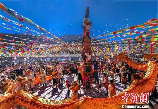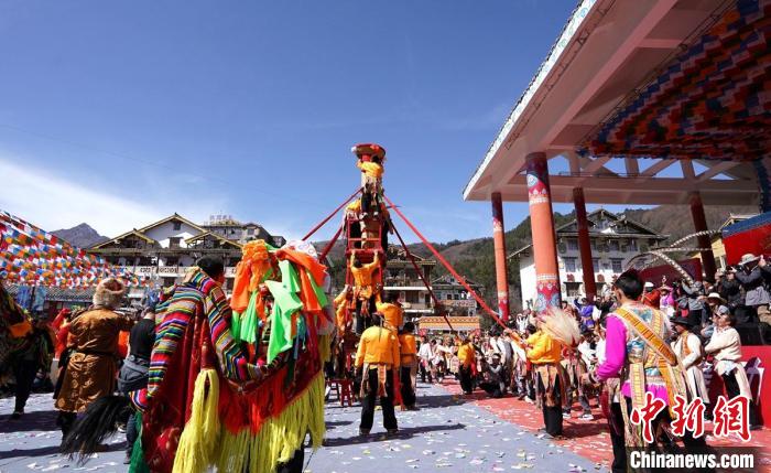 2月18日,農(nóng)歷正月初九,四川雅安市寶興縣磽磧藏族鄉(xiāng)舉辦了一年一度的民俗活動“上九節(jié)”。