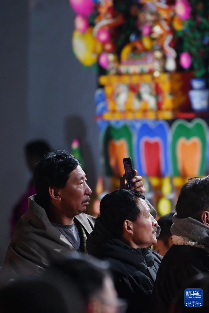 2月24日晚,拉卜楞寺酥油花燈展上人潮涌動(dòng)。新華社記者 方欣 攝