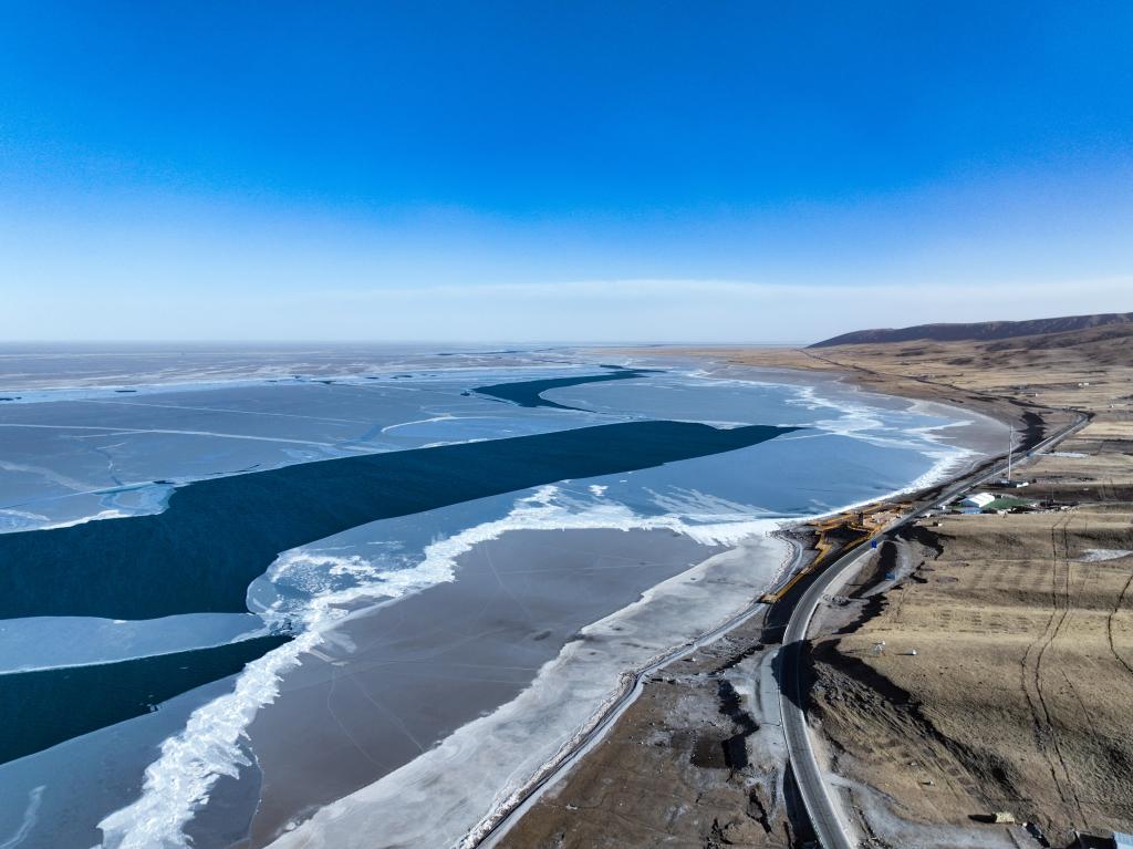 1月25日,青海省海南藏族自治州共和縣境內的青海湖一角(無人機照片)。新華社記者 耿輝凰 攝