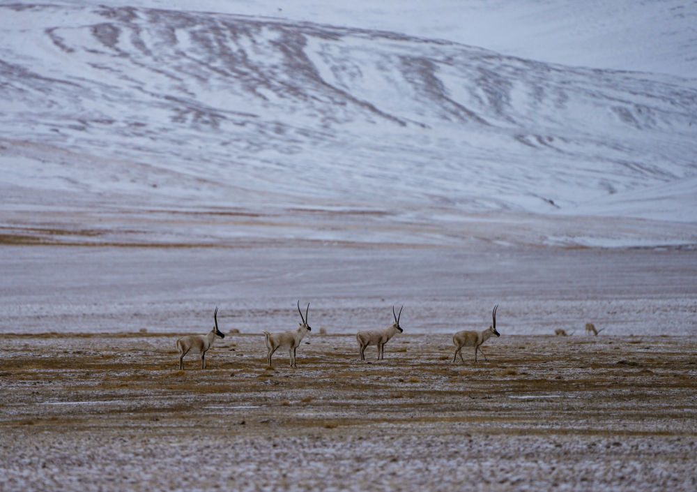 生活在三江源國家公園唐北片區(qū)的藏羚羊(2024年2月1日攝)。新華社記者 儲(chǔ)國強(qiáng) 攝