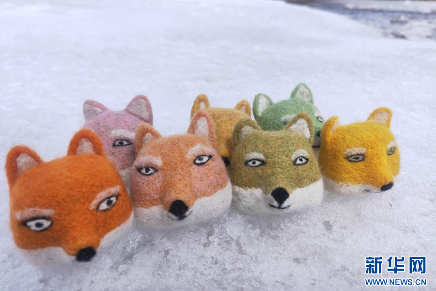 挑選牦牛絨、染色、塑形……在一雙雙巧手的努力下,一個個惟妙惟肖的藏狐掛飾初具雛形,幾天后,這些掛飾將從高原賣向北京、廣州等地?!艾F(xiàn)在毛氈手工藝品供不應(yīng)求,姐妹們靠手藝能增加不少收入?!眮啲斔髂谴虬靡粋€毛氈杯墊,滿臉笑容。
