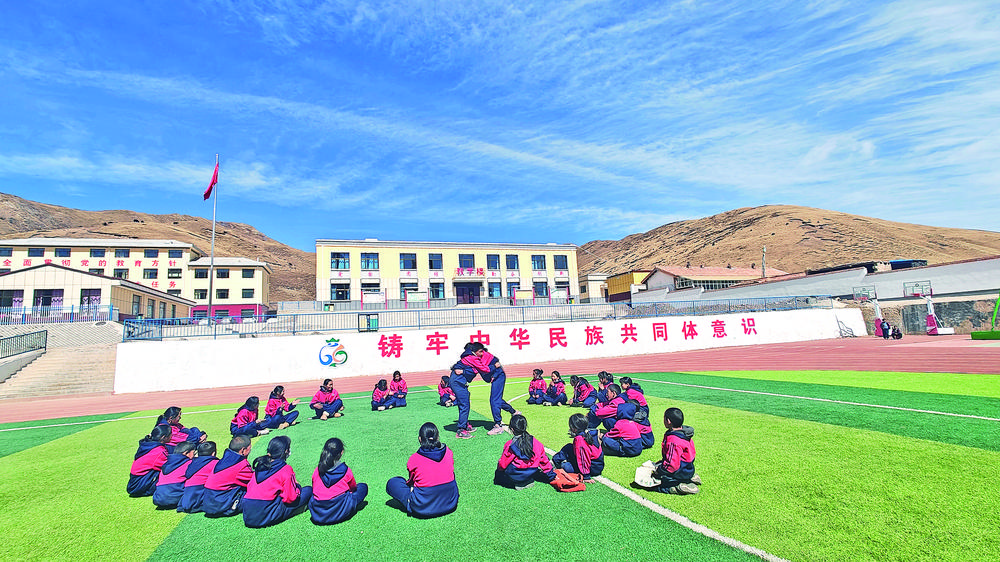 “上學期六年級的統(tǒng)考成績拿到了全縣第一。”卻揚多杰無不驕傲地說。在他看來,學生的主要任務是學習,但也要快樂的成長。“我們現(xiàn)在每周一都有國旗下的講話,每周三會觀影,每周上一次思政課,還有‘我是小小講解員’的練習活動,這些不僅是孩子得到鍛煉、放松心情的機會,也是非常好的愛國主義教育的機會,讓他們知道現(xiàn)在的幸福生活來之不易,要讓他們懂得感恩?!?/p>