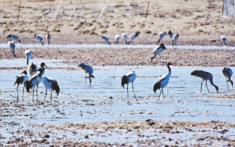 黑頸鶴是世界上唯一生長、繁衍在高原的鶴類。每年3月中下旬,在云貴高原越冬的黑頸鶴就開始陸續(xù)遷徙到紅原、若爾蓋等地繁衍生息。等到11月氣溫下降,這些黑頸鶴又將再次南遷。