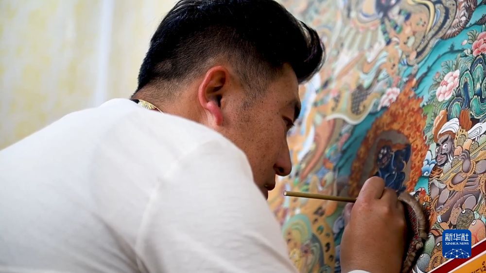 扎西尖措從小拜師學(xué)畫。唐卡精妙之處在于“口傳心授”,師傅啟發(fā)并教會扎西尖措藝術(shù)創(chuàng)作的同時,考慮更多的是想讓他把這門手藝傳承下來,將熱貢文化進一步發(fā)揚光大。