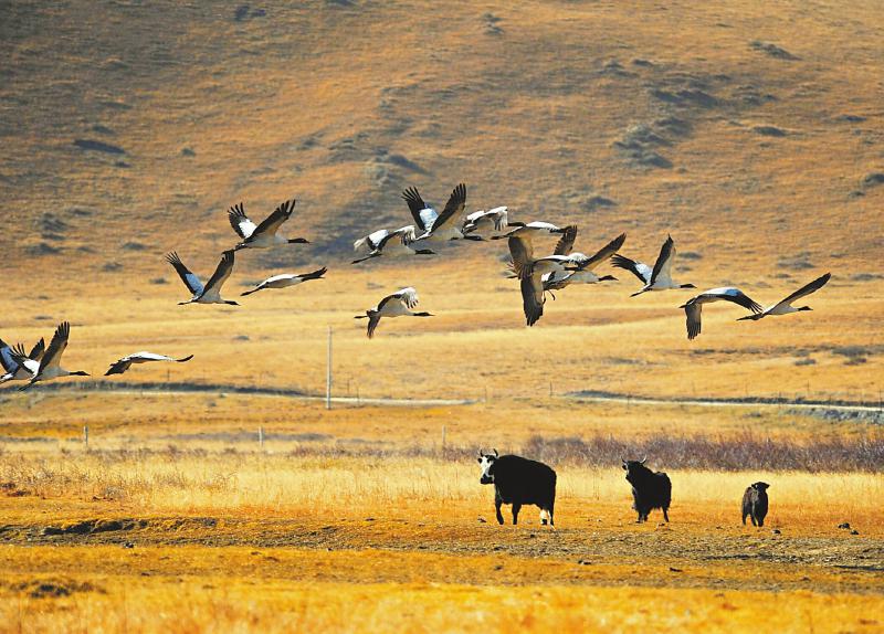 鶴舞月亮灣 攝影人連續(xù)10年用鏡頭記錄紅原黑頸鶴