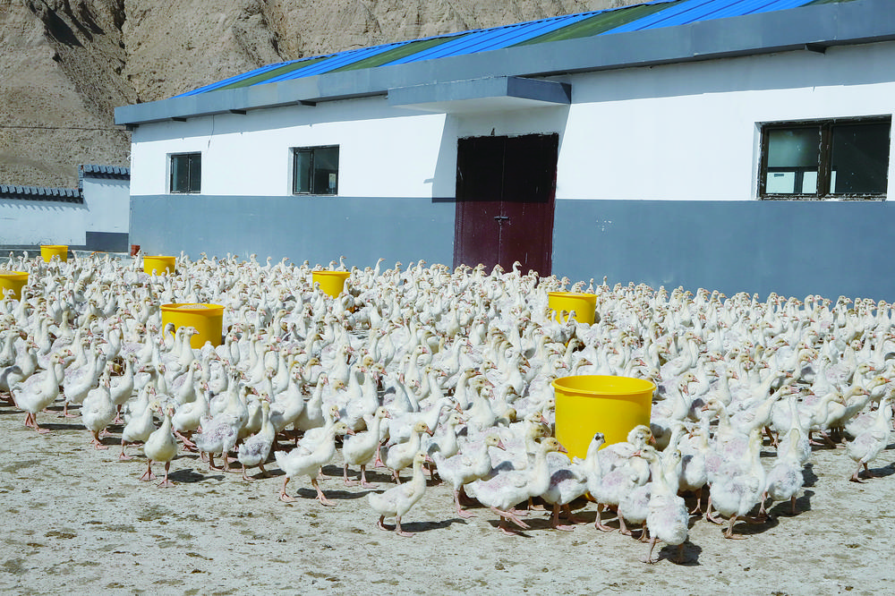 “養(yǎng)殖基地按月招聘工作人員2名,都是本村的群眾,主要負(fù)責(zé)清洗鵝圈、投放飼料、消毒等工作,每個(gè)月有3000元不等的收入?!眲倓倢?shí)現(xiàn)家門(mén)口就業(yè)的仁青吉面露笑容地說(shuō)道。