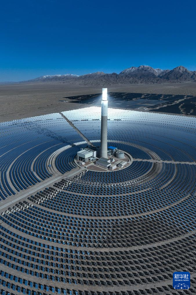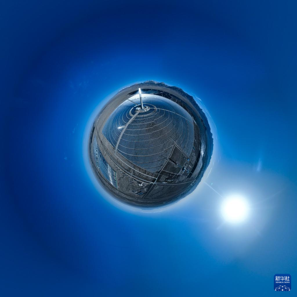 這是4月23日在青海省海西蒙古族藏族自治州德令哈市光伏(光熱)產(chǎn)業(yè)園拍攝的光熱電站(無(wú)人機(jī)全景照片)。新華社記者 張龍 攝