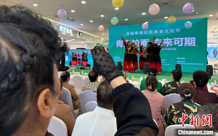活動(dòng)現(xiàn)場(chǎng),人頭攢動(dòng),展示區(qū)展出拉面成品,可品嘗手工拉面,亦有牦牛肉干、甜醅等青海特色美食,相關(guān)從業(yè)人員“各顯神通”,吸引來(lái)往行人。