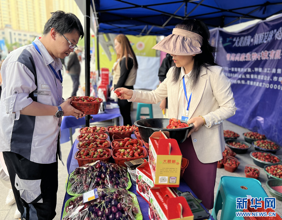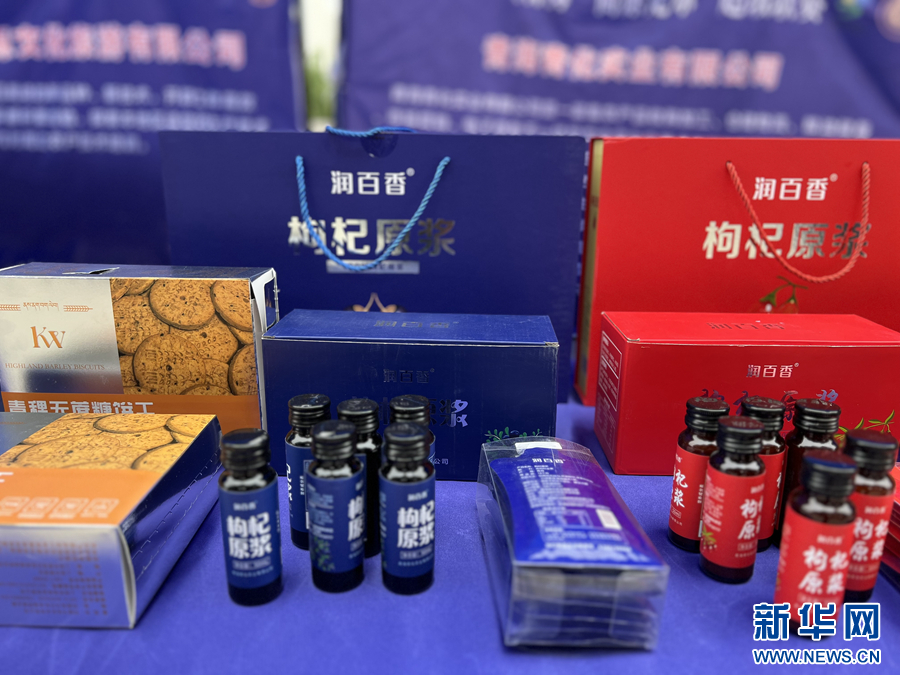 農(nóng)畜產(chǎn)品展示區(qū)的青海特色產(chǎn)品。新華網(wǎng) 魚(yú)昊 攝