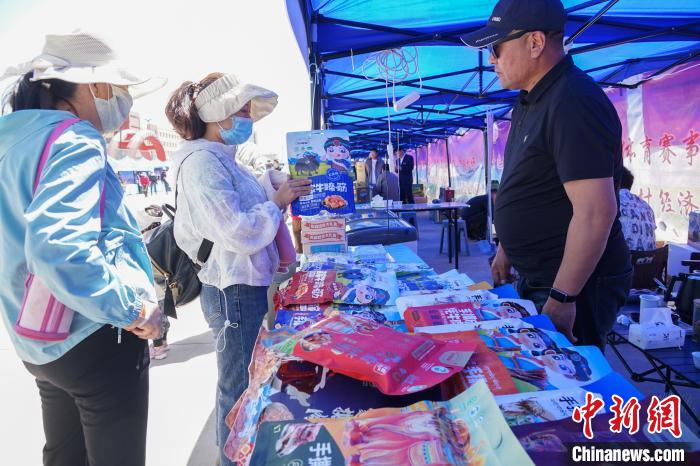 圖為民眾在賽場(chǎng)外購(gòu)買海北州特優(yōu)農(nóng)畜產(chǎn)品。馬銘言 攝