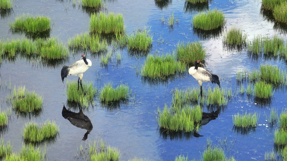 黑頸鶴進入繁育高峰期。羅爾吾占登 攝