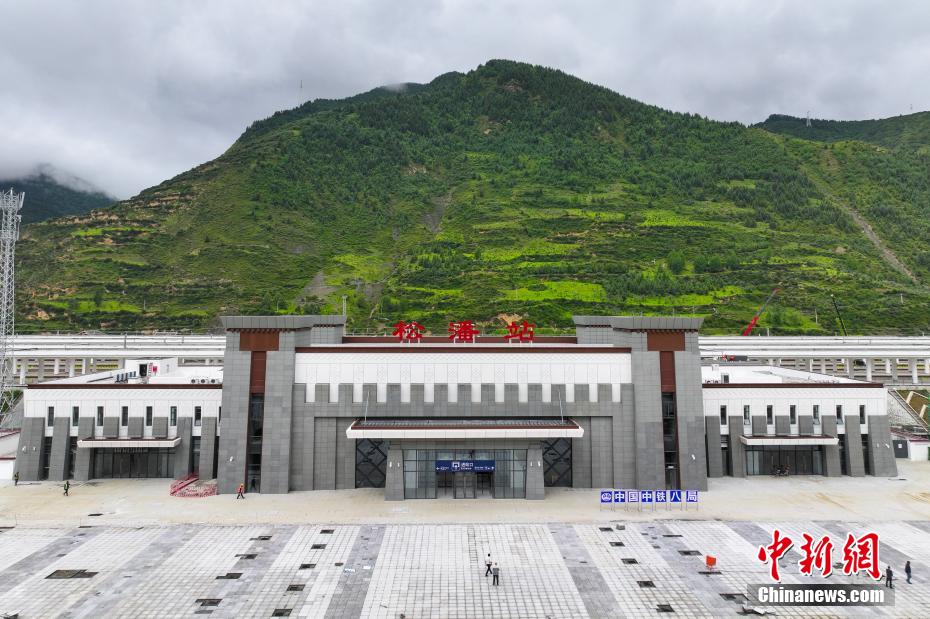圖為7月7日拍攝的川青鐵路松潘站站房外景。(無人機(jī)照片)中新社記者 劉忠俊 攝