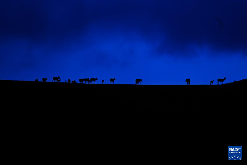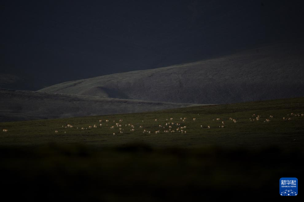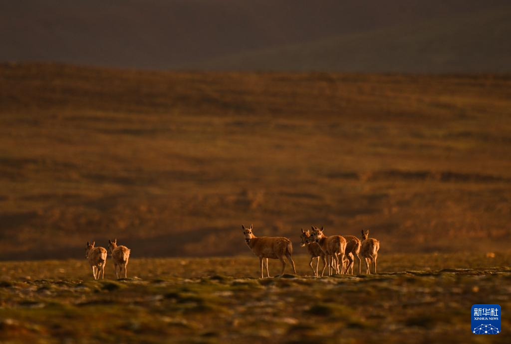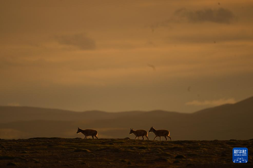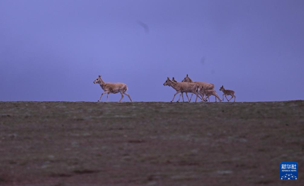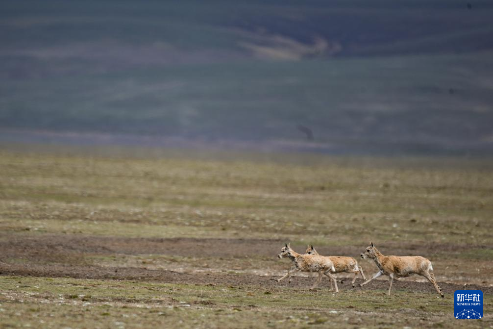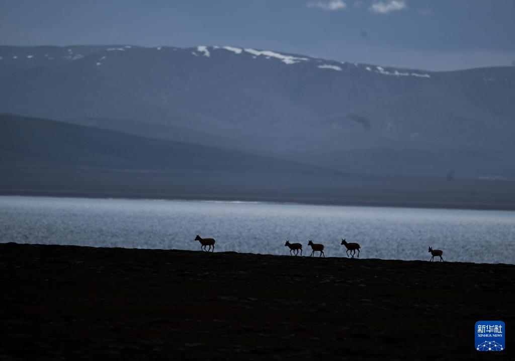7月8日,在可可西里卓乃湖區(qū)域,幾只藏羚羊在活動(dòng)。新華社 杜笑微 攝