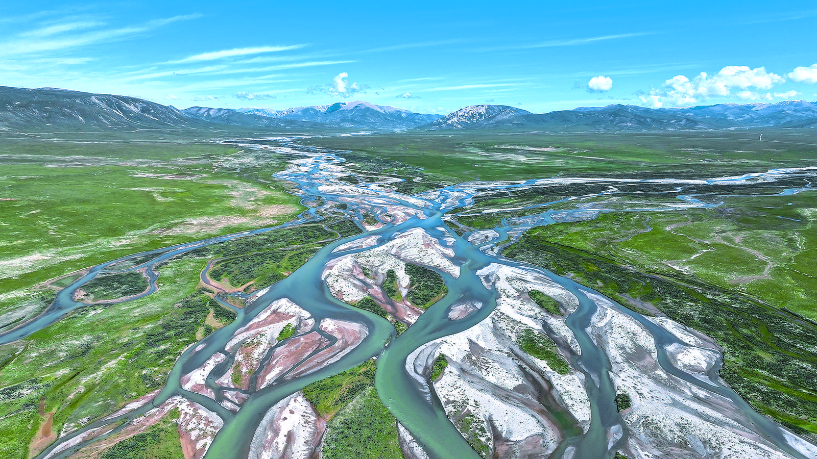 盛夏的清晨,從海西蒙古族藏族自治州天峻縣出發(fā),沿布哈河逆流而上,行進(jìn)的方向,正是青海湖湟魚(裸鯉)洄游的方向。從高處俯瞰,布哈河的一條條分岔猶如人體血管,肆意流淌,但最終又歸為一處,河道兩旁甚至河道內(nèi)的淺灘,密密麻麻分布著灌木林,林木簌、簌、簌……響動(dòng)著,只見馬鹿林中穿梭。