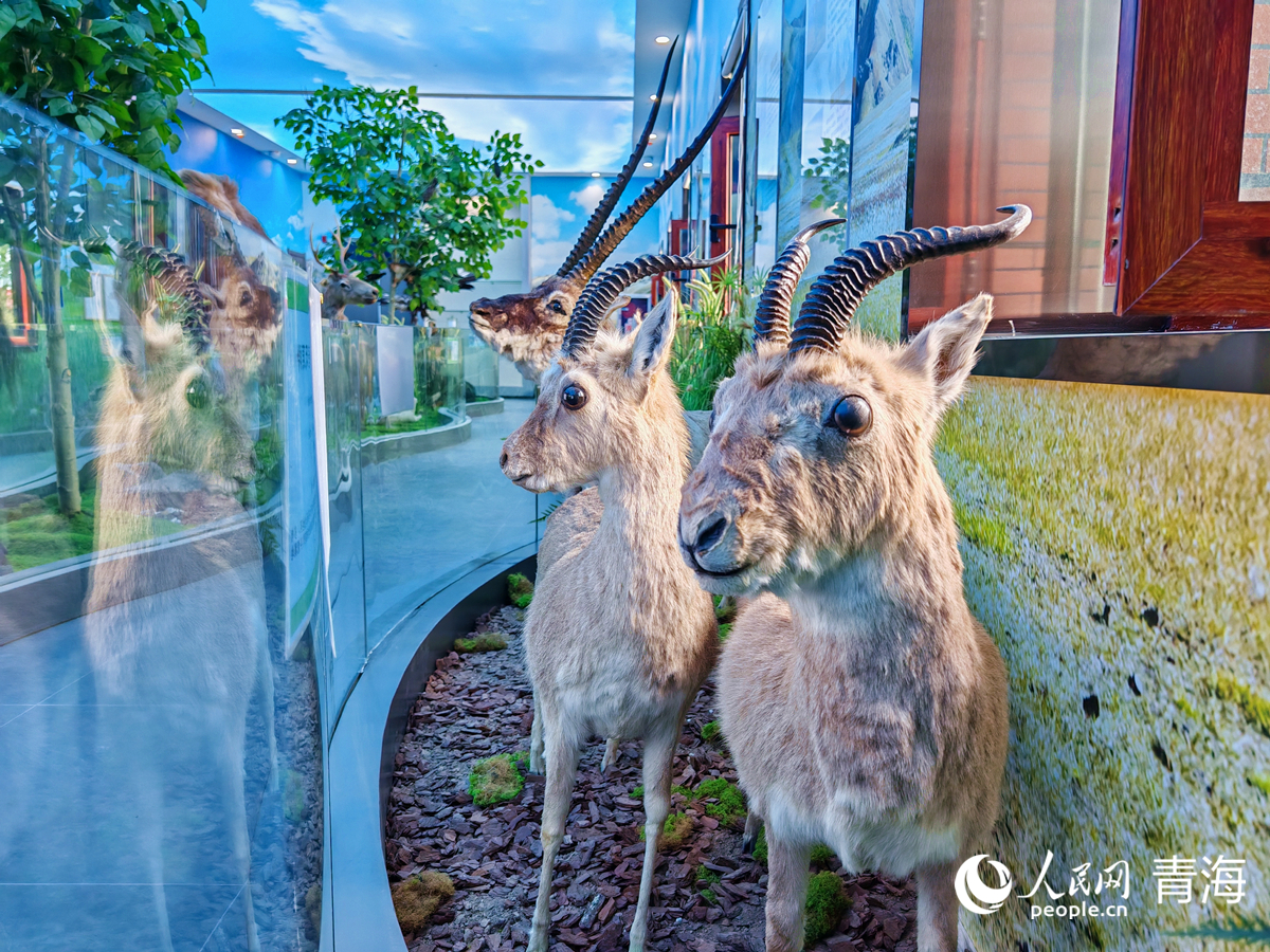 青藏高原野生動植物標本科普館里的普氏原羚標本。人民網(wǎng)記者 楊啟紅 攝